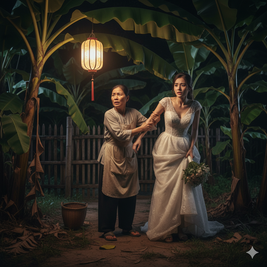 Đêm ấy, khoảng gần 11 giờ, khách khứa đã về hết.Trang mệt rã rời, vào buồng tắm thay bộ váy ngủ mới mua.Bỗng cửa sau kẽo kẹt mở, bà Tư giúp việc – người gắn bó với nhà chồng hơn 20 năm – hốt hoảng kéo tay cô ra sau vườn, giọng run lẩy bẩy: