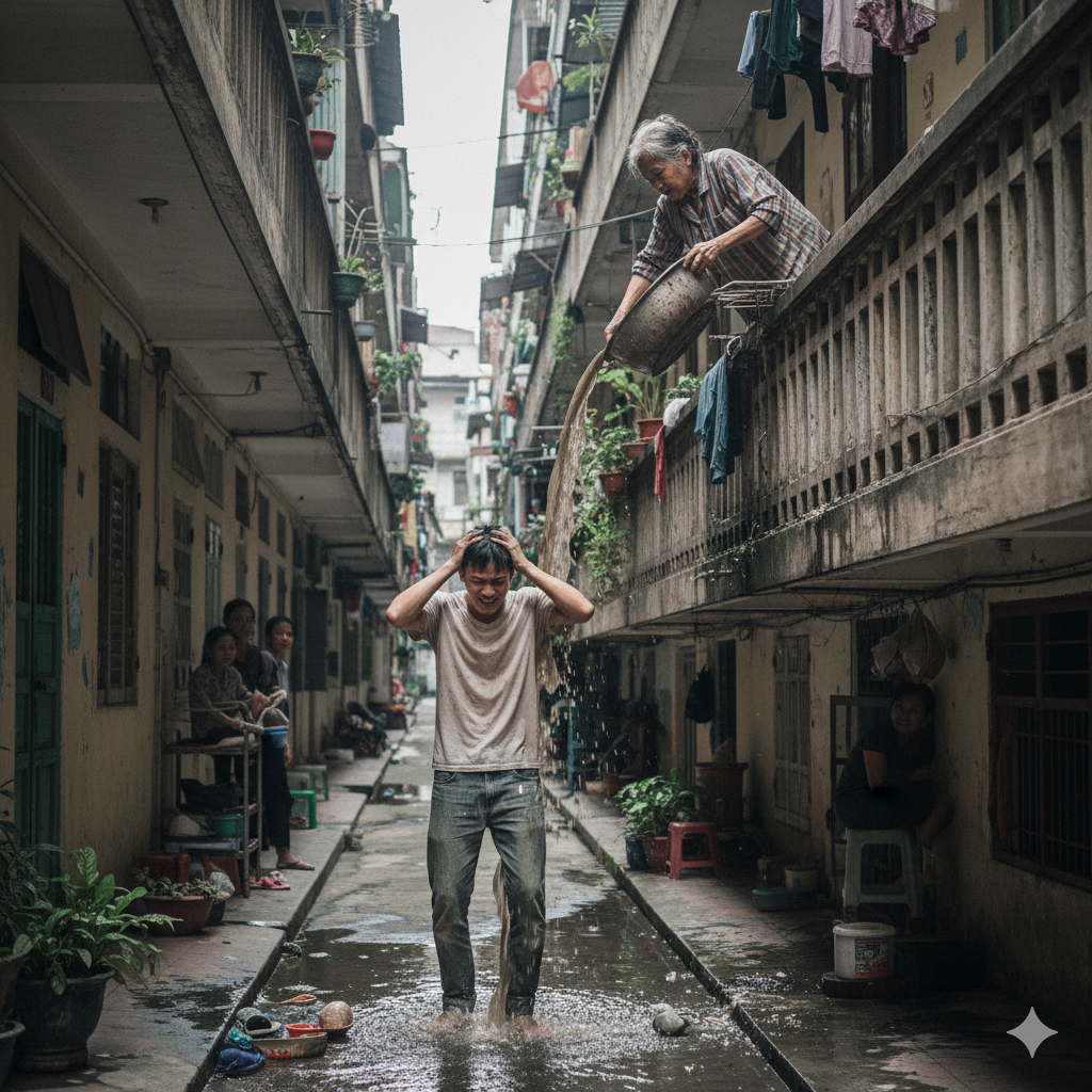 Bà không nói gì, cũng không xin lỗi. Từ hôm đó, chuyện “tắm nước trời” cứ lặp đi lặp lại. Nước rửa rau, nước cơm, thậm chí cả nước giặt. Tôi từng hét lên, từng chửi bới, nhưng bà chỉ khẽ nhếch mép, quay vào nhà.