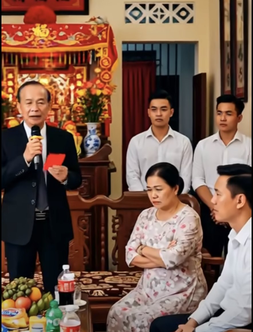 Đến lúc chuẩn bị đưa dâu, khi ai cũng nghĩ hôn sự này sẽ thành vết nhơ, thì ông Lâm – trưởng đoàn nhà gái – bất ngờ xuất hiện. Ông ung dung bước vào, trên tay bưng một mâm lễ lớn phủ khăn đỏ thắm.
