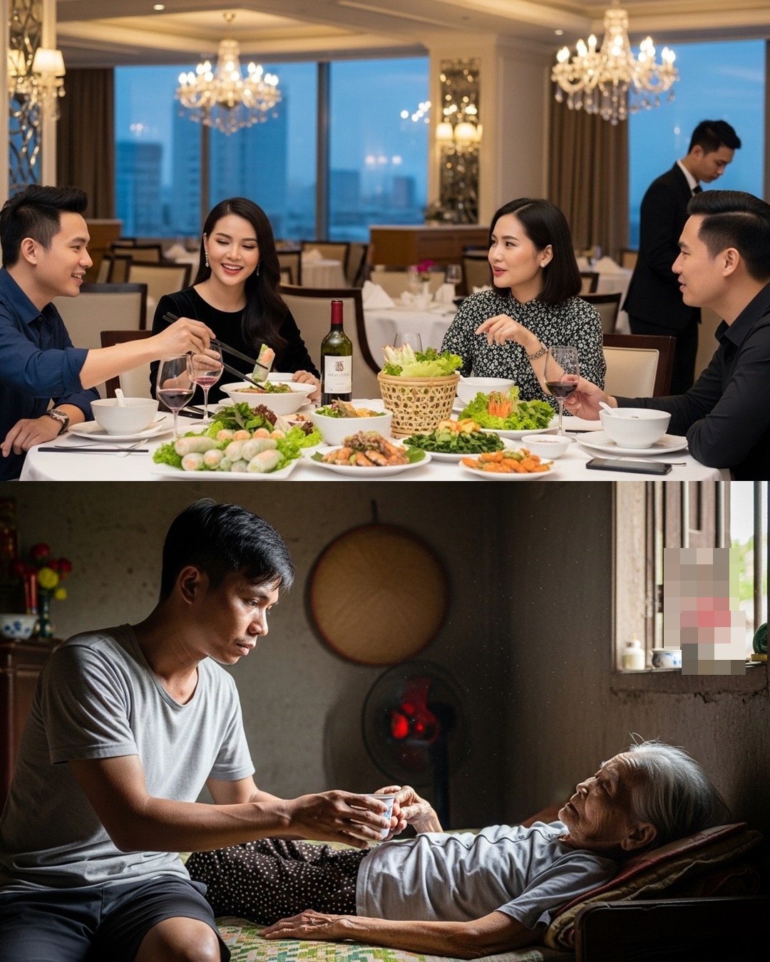 Và cứ thế, chỉ còn Minh ở lại, lặng lẽ chăm bà từng muỗng cháo, từng viên thuốc.