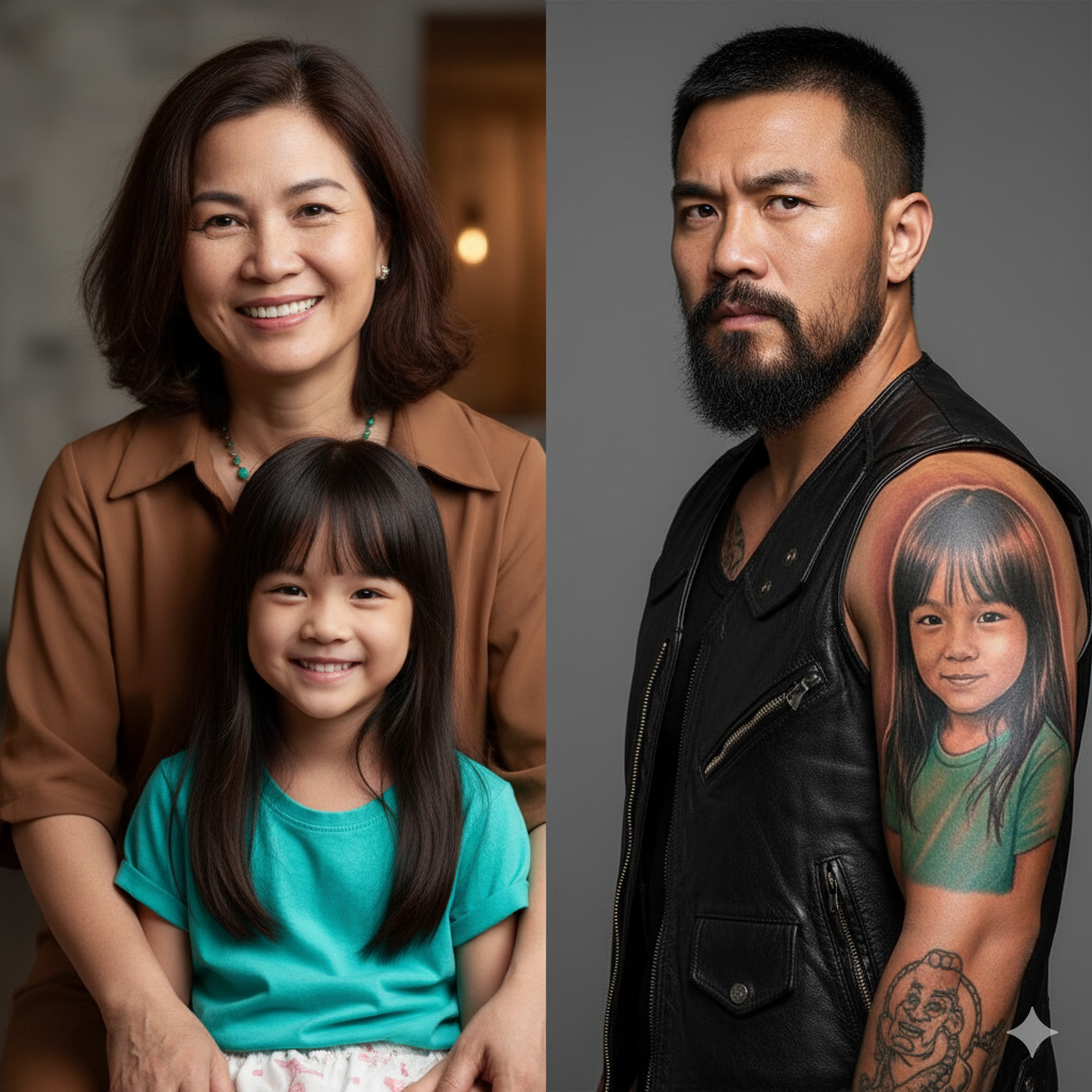 Cường thoáng lảng tránh, nhưng khi thấy nước mắt người mẹ, nét mặt anh trở nên trĩu nặng. Anh im lặng một lúc lâu, rồi thì thầm:– Năm đó, tôi đi theo nhóm làm thuê cho một người đàn ông lạ. Tình cờ, tôi thấy họ chở theo một bé gái khóc lóc ở khu vực gần biển. Lúc ấy tôi chỉ là thằng trẻ, chẳng dám can thiệp. Nhưng gương mặt con bé ám ảnh tôi mãi, nên tôi xăm lại để không quên.
