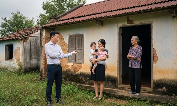 Mỗi lần nhắc đến, chồng cô – Tuấn – lại gắt gỏng: – Về làm gì? Ở quê thì có gì đâu ngoài đòi tiền. Tôi không nuôi cả họ nhà cô. Tiền chi tiêu của Mai luôn bị anh ta kiểm soát chặt chẽ, lương của vợ anh bắt Mai chuyển hết cho chồng giữ chỉ để lại đủ chi tiêu cho gia đình. Anh lấy lý do nhà chung cư mới mua còn vay nợ nhiều cần phải tập trung trả nợ. Ngay cả khi con ốm, Mai cũng phải ngửa tay xin từng đồng. Nhưng lần này, nhân dịp nghỉ hè, Mai năn nỉ mãi Tuấn mới miễn cưỡng đồng ý đưa hai mẹ con về. Chiếc xe dừng trước ngôi nhà cấp bốn lụp xụp. Tường bong tróc, mái ngói xiêu vẹo. Bố mẹ Mai già đi nhiều, quần áo bạc màu, tay run run ôm lấy con gái và cháu ngoại.
