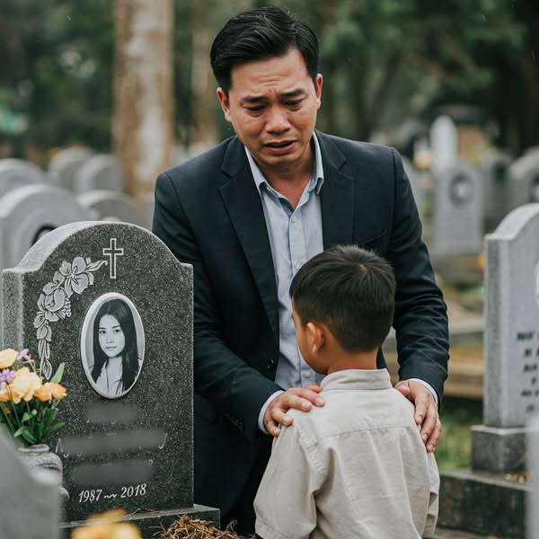 Vũ quyết định đưa Nam về nghĩa trang một lần nữa. Anh quỳ trước mộ Hương, ôm chặt cậu bé. “Nam, chú là cha cháu. Chú xin lỗi vì đã không ở bên mẹ con cháu.” Nam ngơ ngác, nhưng rồi cậu bé bật khóc, ôm lấy Vũ. “Cháu không trách chú. Mẹ nói cha là người tốt, chỉ là… cha ở xa.”