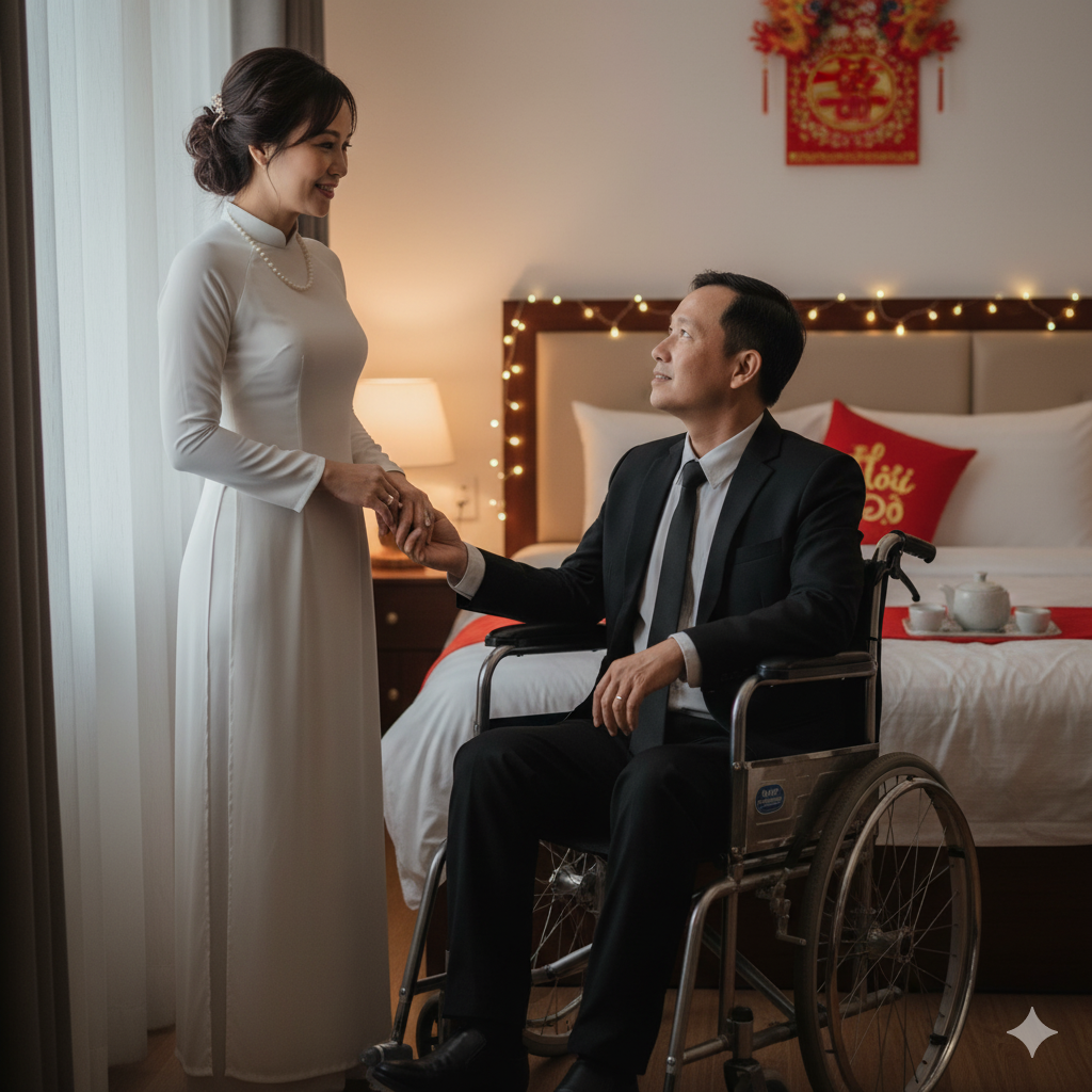Tôi chỉ cười, không đáp. Nhưng sâu trong tim, tôi vẫn thấp thỏm. Một cô dâu tuổi 40, cưới người đàn ông tật nguyền — nghe đã thấy buồn hơn cả vui.