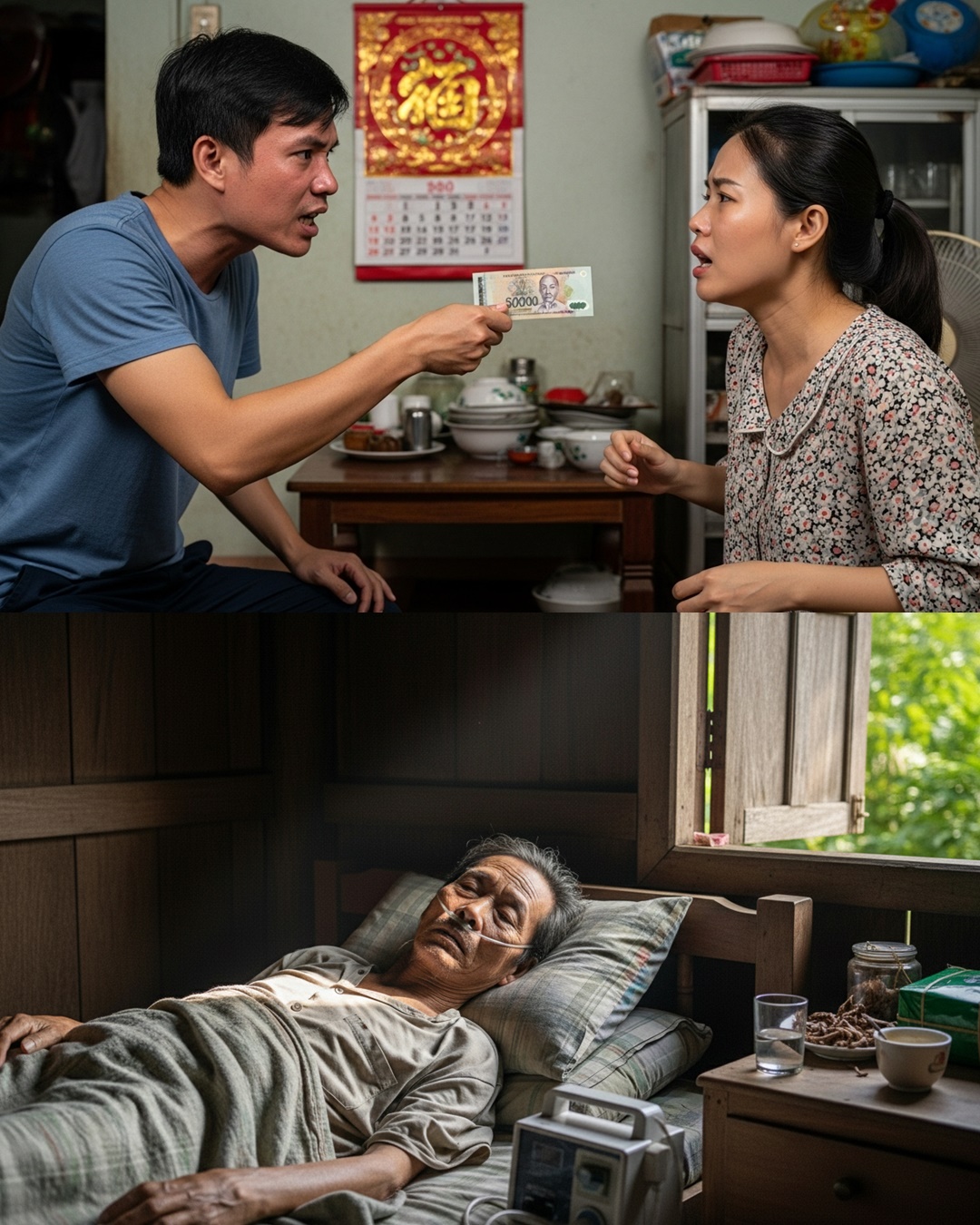Hùng đặt bát cơm xuống bàn, giọng lạnh tanh: “Biếu ông 500 ngàn là được rồi, về làm gì cho tốn kém. Nhà này còn khối việc phải lo.”