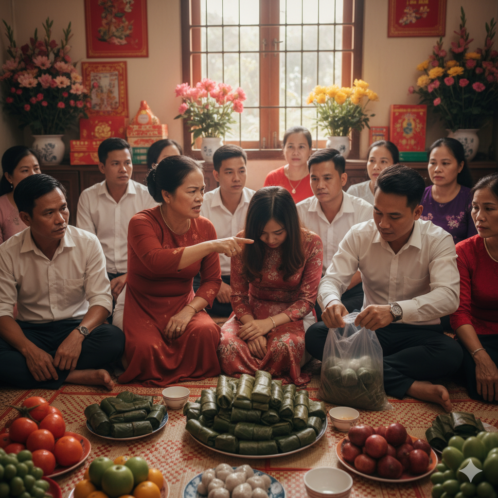 Hôm Tuấn về, cả họ ngồi chật kín phòng khách. Ai cũng mong chờ xem chàng rể tương lai mang quà cáp thế nào. Nào ngờ, Tuấn chỉ lỉnh kỉnh xách theo đúng một thùng… 50 cái nem chua Thanh Hóa, gói toàn lá chuối xanh um, còn sợi buộc thì lỏng lẻo, vài cái bung cả ra.
