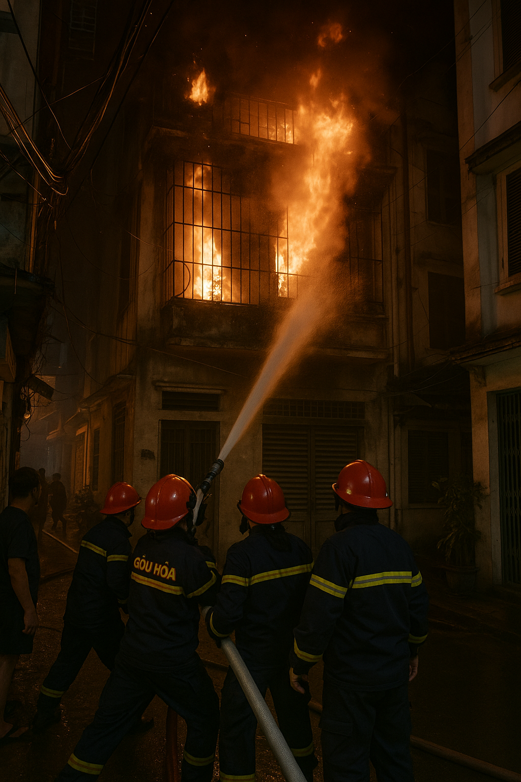 Tiếng “bụp” nhỏ vang lên từ góc nhà, rồi khói bốc lên, len lỏi qua những khe cửa hẹp.Chỉ ít phút, ngọn lửa bùng lên dữ dội, nuốt chửng chiếc xe máy dựng dưới tầng trệt.Trong không gian kín bưng, hơi nóng và khói đen lan nhanh, chặn đứng lối thoát duy nhất.