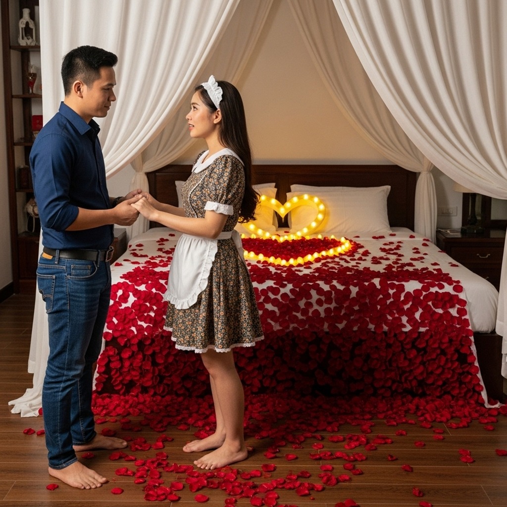 – Lương tháng này, chú định thưởng cho cháu thêm… Nhưng phải vào phòng ngủ này mới nhận được.