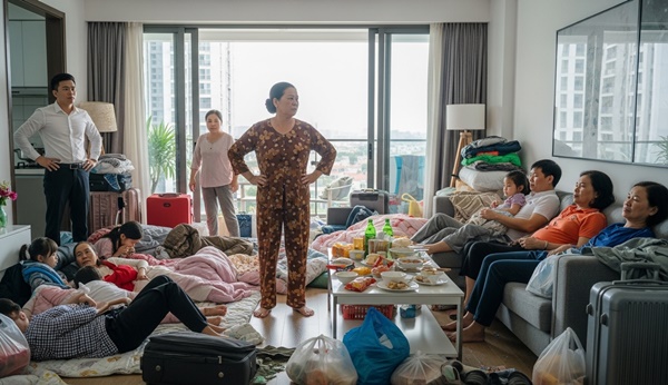Tôi vẫn nhịn. Tôi dọn cơm, rửa bát, nấu nướng cho cả đoàn.Ngày thứ hai, họ bắt đầu ở lại ngủ qua đêm.Ngày thứ ba, tủ lạnh của tôi trống rỗng, bát đĩa chồng chất.Ngày thứ tư, họ kéo thêm mấy người bạn “qua thăm tí cho vui”, mở nhạc ầm ĩ, hút thuốc đầy ban công.