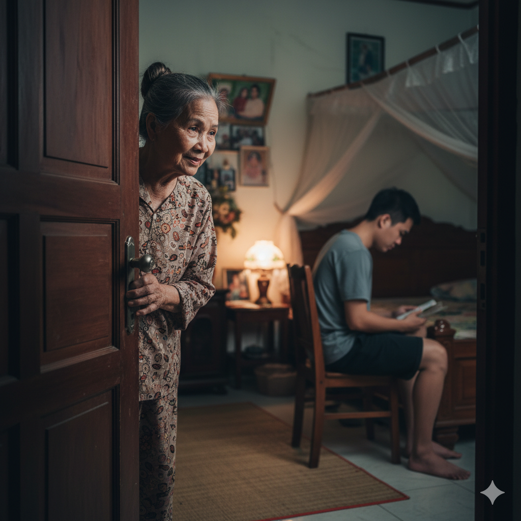 Tôi cố giữ bình tĩnh. “Thôi, chắc cậu ta mệt.”Nhưng đến khi My nói:— Mẹ ơi, chắc ảnh dậy rồi mà chưa ra… để con vào xem.Tôi gạt tay:— Để mẹ gọi. Ở rể mà ngủ tới trưa, coi sao được.