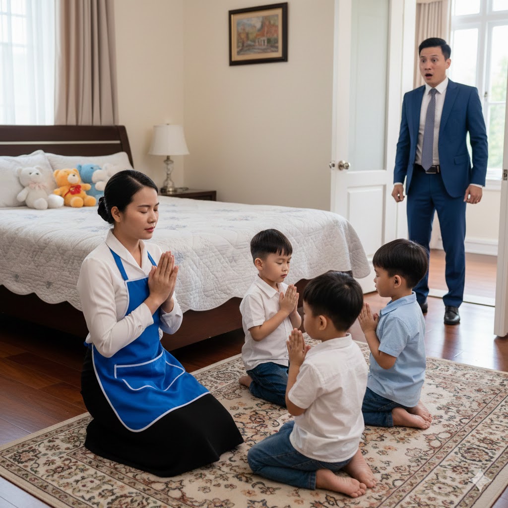 Ba đứa con quay ngoắt lại. Tất cả đều hoảng sợ, nhưng không có vẻ gì là… hối lỗi. Thành – thằng cả – chống tay thở dốc: