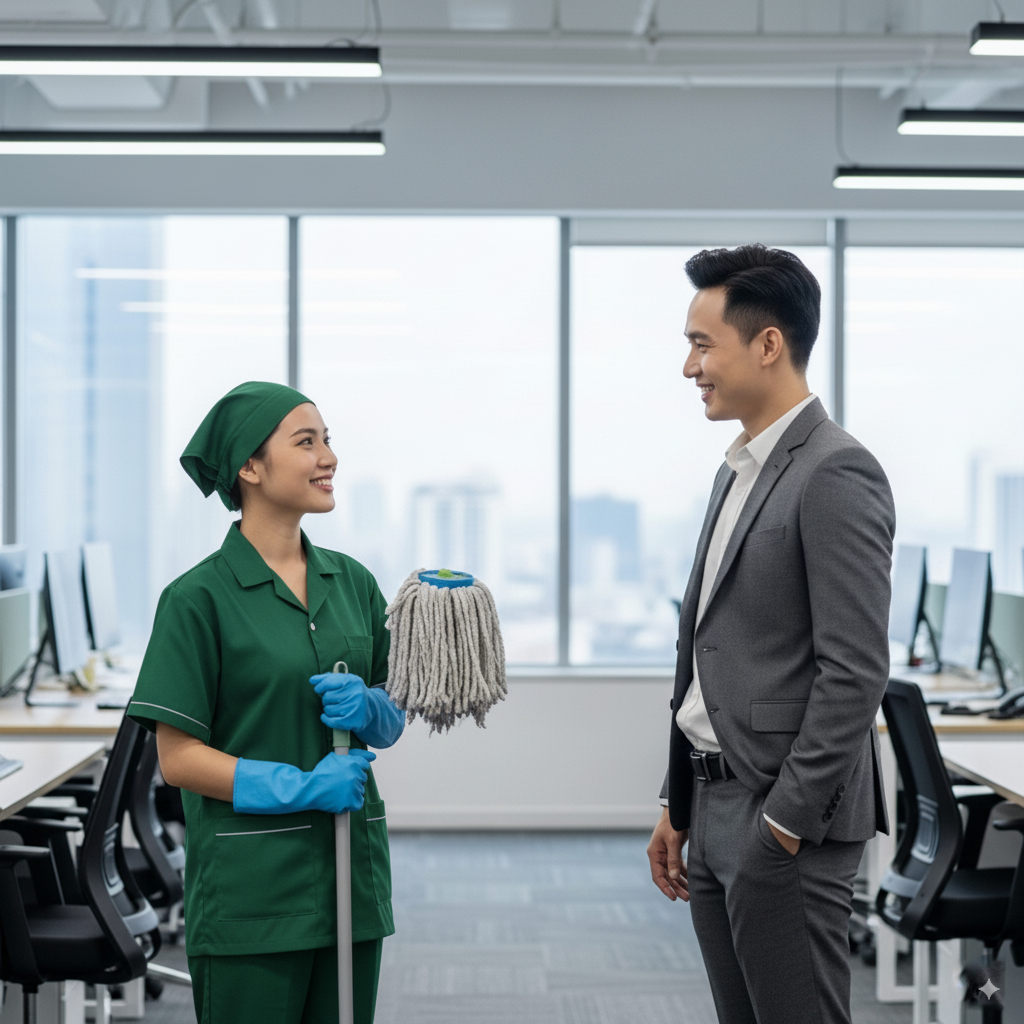 Sáng nay, tôi chỉ định thay mẹ làm ca lau dọn. Mẹ bị ốm đột ngột, không thể xin nghỉ vì công việc hợp đồng thời vụ rất dễ bị thay thế. Tôi thương mẹ, nên lặng lẽ khoác lên mình bộ đồng phục rộng thùng thình, xách chiếc xô và cây lau nhà đi vào tòa cao ốc sang trọng. Ý nghĩ trong đầu chỉ là: làm nhanh, làm gọn, rồi biến mất như chưa từng xuất hiện.