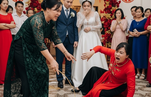 Cả rạp cưới n//ổ tu//ng tiếng xì xào. Người ta chỉ trỏ, kẻ quay lại nhìn mẹ chú rể – bà Thu – m//..ặt c.//.ắt không còn gi…ọt m……áu.