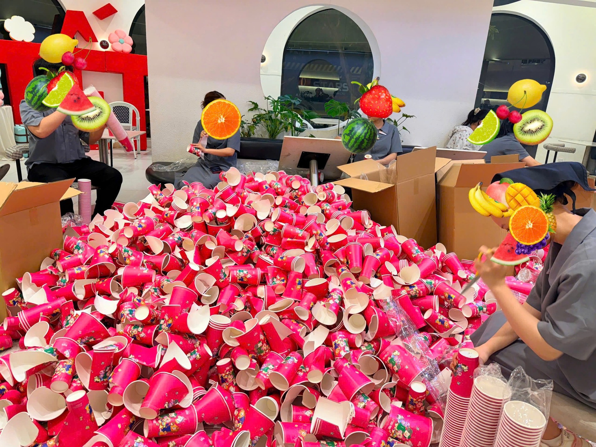Chuỗi trà sữa T.P. in khoảng 10.000 ly giấy có gắn artwork để phục vụ kinh doanh, trong đó khoảng 1.000 ly đã được bán ra dịp Tết. Ảnh: P.M.