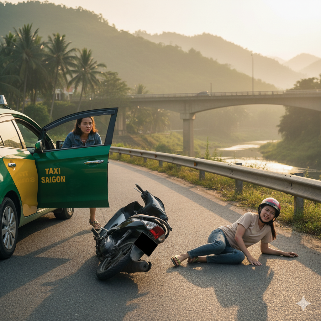 Tôi dắt xe ra khỏi cổng. Vừa đến đầu hẻm — tôi gọi taxi, rồi để xe đó… đúng vị trí dễ nhìn.