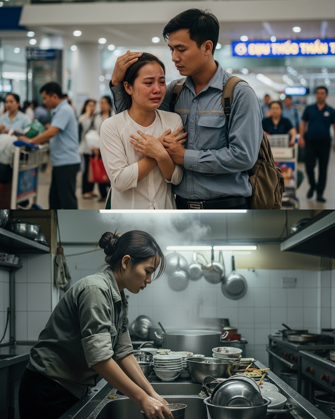 Mẹ chồng Mai đã dặn con trai tiết kiệm tiền triệt để bằng cách khi nào về nước thì cầm cả về chứ không gửi ít một về làm gì cả. Để trả nợ số tiền đó, Mai đi làm giúp việc cho một gia đình ở thành phố. Sáng lau nhà, trưa giặt đồ, tối trông trẻ — ngày làm 14 tiếng, đôi bàn tay chai sạn, nứt toác vì nước rửa chén.