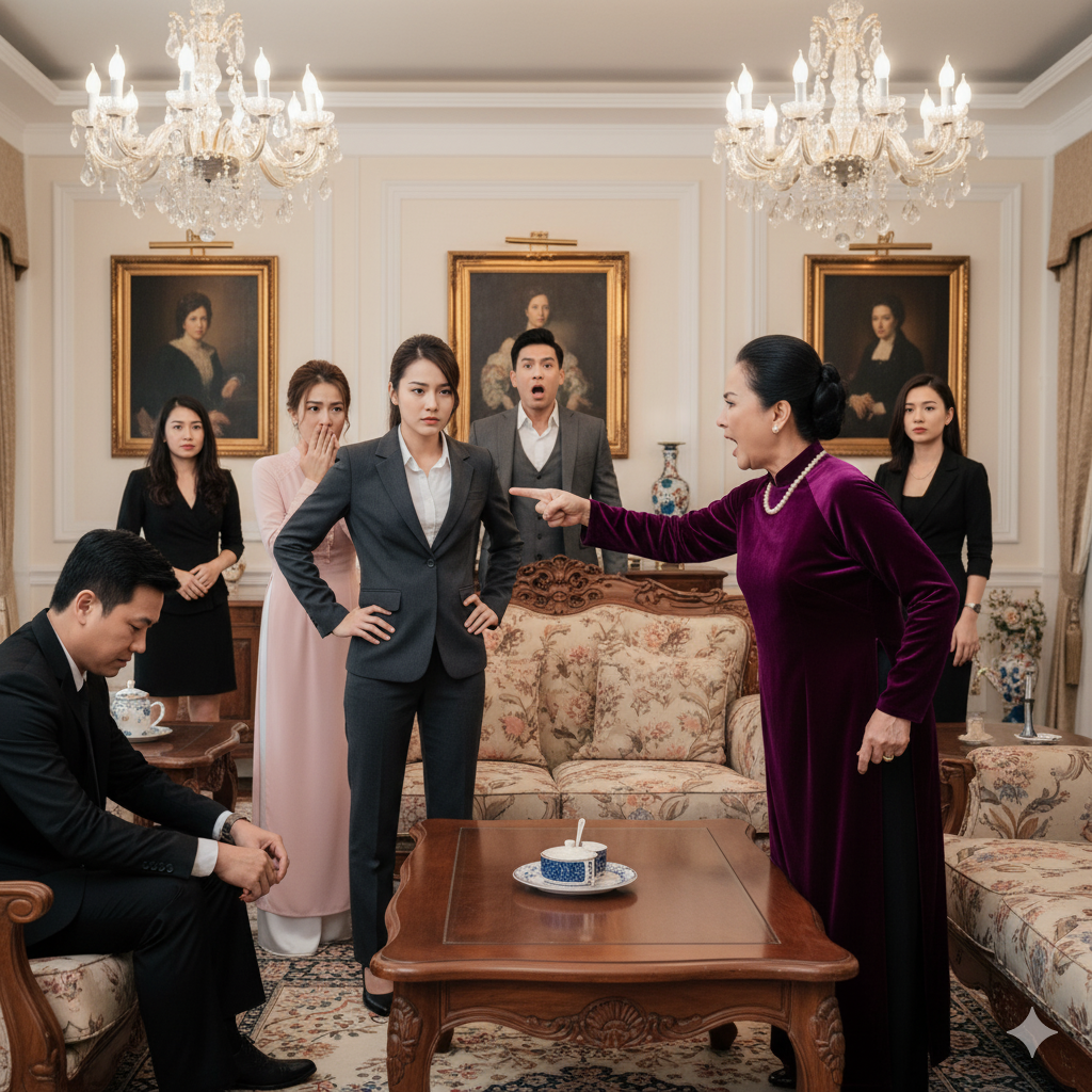 Cả nhà chồng choáng váng. Tiếng bàn tán xôn xao, rồi tiếng khóc lóc trách móc vang lên. Mẹ chồng tôi gào thét, lao tới túm lấy tay tôi: